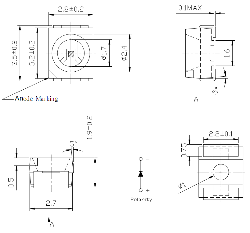 3528平面四脚红光